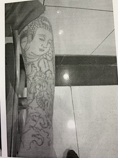 但初二暑假开学前一个月,俊哲的左前臂又文了一处佛面。徐江平发现后,又是一顿暴打,“在地上踩,打了半死。”俊哲气不过,在被打第二天就去文身馆,把左前臂之上的胳膊也文了起来。