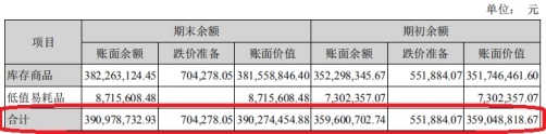 截至2019年上半年末,爱尔眼科存货账面余额3.91亿元,账面价值3.90亿元,跌价准备70.43万元;期初存货账面余额3.60亿元,账面价值3.59亿元,跌价准备55.19万元。报告期内新计提存货跌价准备70.43万元,转回或转销55.19万元。