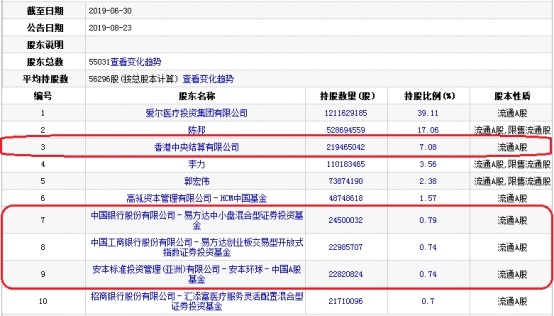 截至2019年6月30日,爱尔眼科的主要股东(前十大股东)中,与2018年12月31日相比,有3家股东持股不变,4家股东选择增持(2家新增主要股东),5家股东选择减持(2家减持后退出主要股东序列)。